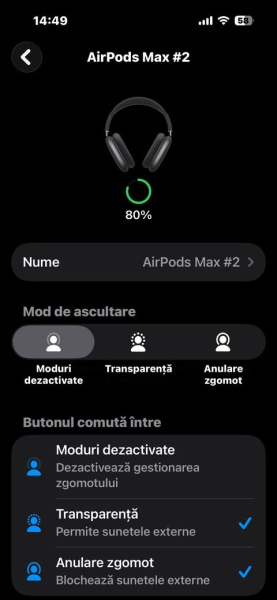 • Anulare activă a zgomotului (ANC) – izolează complet sunetele exterioare pentru o experiență audio pură